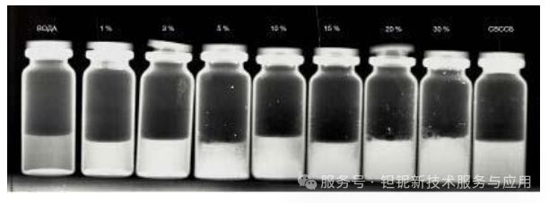 图6.不同浓度的GOT凝胶混悬液与30%尿路造影剂的X射线对比特性比较。