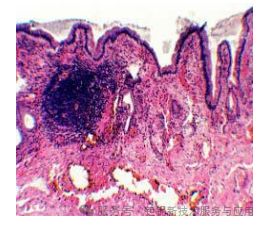 图10.犬胆囊注射LOT 30 %凝胶混悬液后,苏木精和伊红染色,100倍放大。